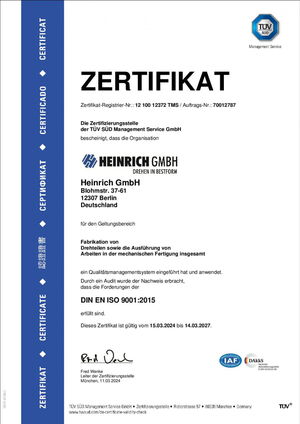 It may come as a surprise, but the basic principle of modern management systems has a long tradition in the HEINRICH turning shop. After all, the continuous improvement of workflows and processes is indispensable if a high level of performance and quality is not only to be achieved, but also to be maintained in the long term.